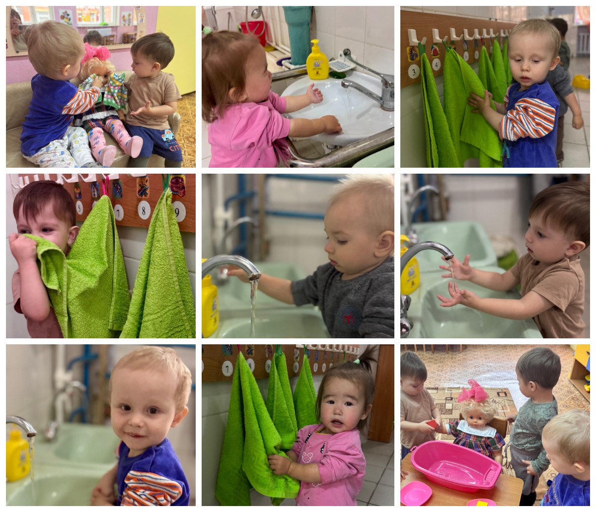 Сегодня наши малыши убедились, насколько важно соблюдать гигиену! Ведь чистота — залог здоровья! Наши очаровательные крохи познакомились с необычной гостьей — куколкой с грязными ручками. Ребята помогли ей стать чистой и красивой. Затем детишки вспомнили, что руки моют не только игрушки, но и сами ребятки перед едой, после прогулки и посещения туалета. Все дружно продемонстрировали умение правильно мыть ручки.