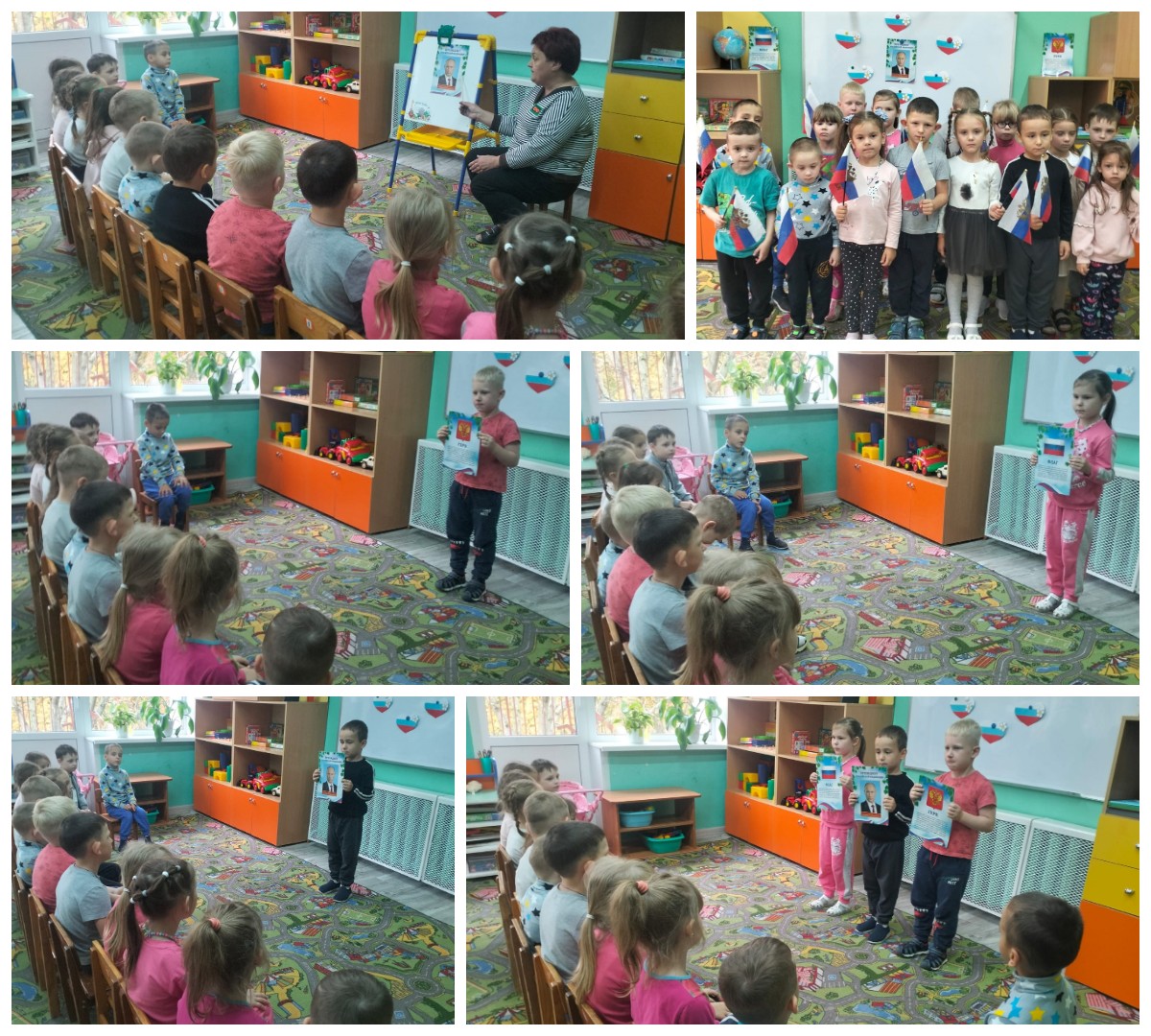 Сегодня в старшей группе «Детки-конфетки» прошёл увлекательный тематический день, посвящённый Дню рождения Президента Российской Федерации! Для воспитанников была организована познавательная беседа на тему «Наш президент», где ребята узнали много интересного о главном человеке нашей страны. Затем дети приняли участие в занимательной дидактической игре «Символы России», закрепив знания о государственных символах своей Родины.