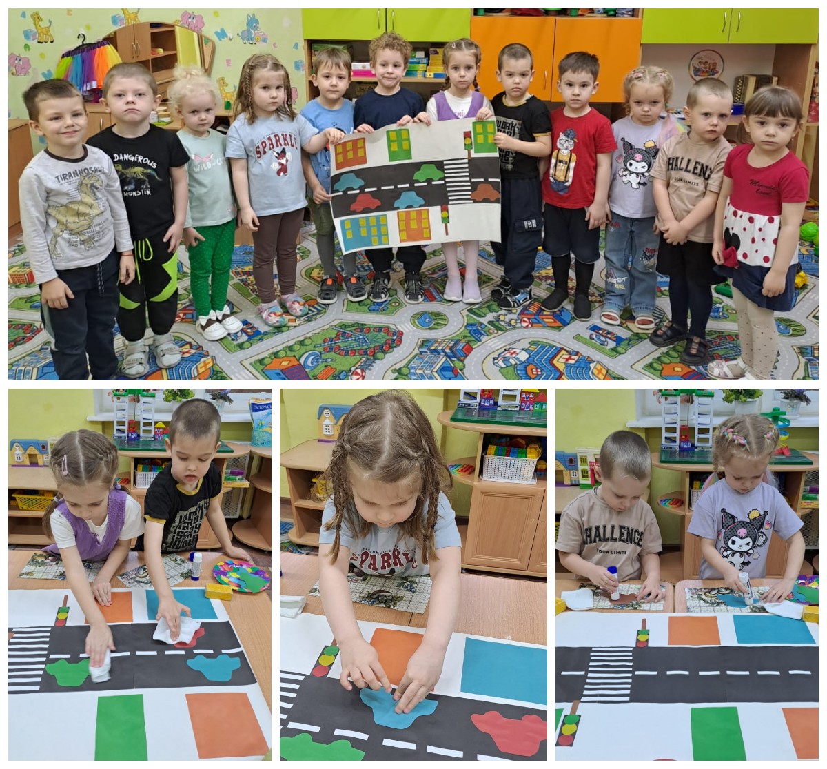 Сегодня воспитанники младшей группы «Затейники» приняли участие в акции, посвящённой Дню памяти жертв ДТП. Ребята совместно создали яркий плакат под названием «Жизнь без ДТП!», украсив его красочным светофором и яркими отпечатками ладошек разных цветов. Это символично подчёркивает важность соблюдения правил дорожного движения и бережного отношения друг к другу на дорогах.