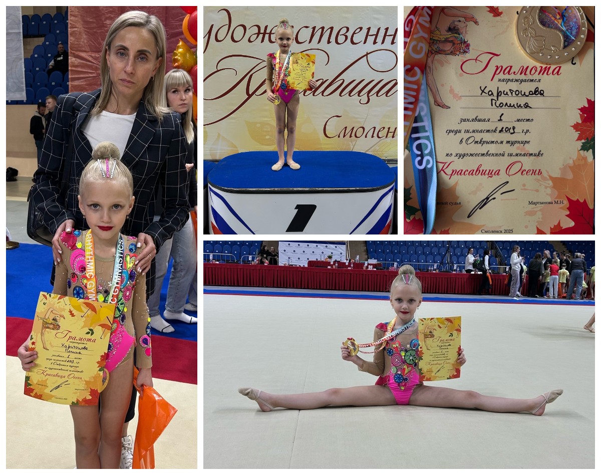 15 ноября в г. Смоленске во Дворце спорта «Юбилейный» прошел открытый турнир по художественной гимнастике «Красавица осень». ХАРИТОНОВА ПОЛИНА, воспитанница подготовительной группы «Солнечные зайчики», завоевала золото среди гимнасток 2019 года рождения. Поздравляем Полину! Умница! ТАК ДЕРЖАТЬ, ЧЕМПИОНКА!