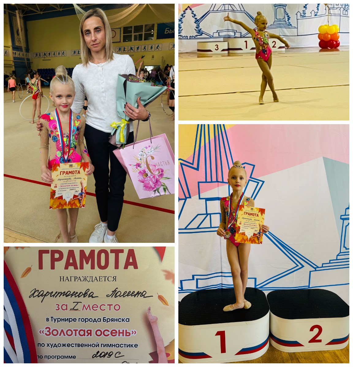 5 октября прошел турнир города Брянска по художественной гимнастике «Золотая осень». ХАРИТОНОВА ПОЛИНА, воспитанница подготовительной группы "Солнечные зайчики", завоевала золото по программе 2019 С. Поздравляем Полину! УМНИЦА! ТАК ДЕРЖАТЬ!